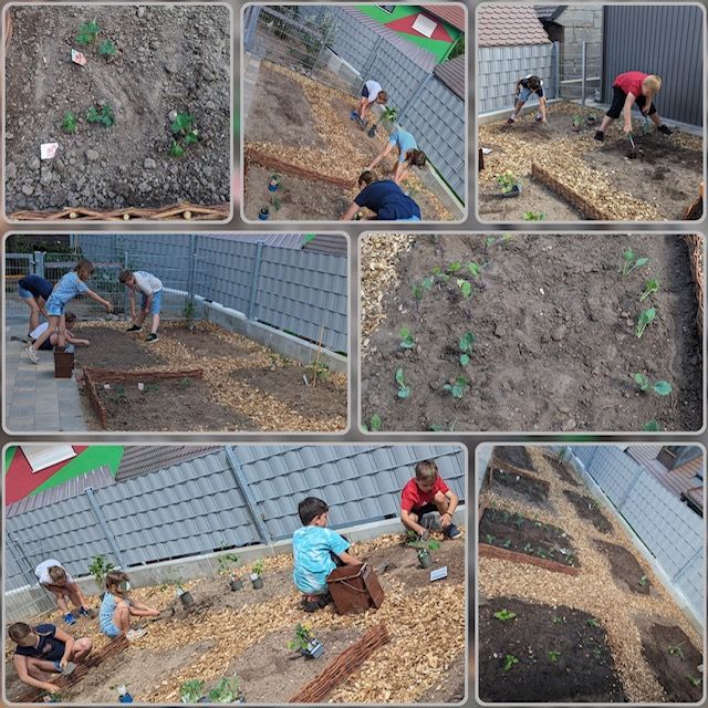 In diesem Schuljahr haben wir für unsere Garten AG mehrere Beete im Schulgarten bekommen, die wir zusammen mit den Kindern neu angelegt und bepflanzt haben. Die Ernte wurde überwiegend für unsere Koch AG verwertet.