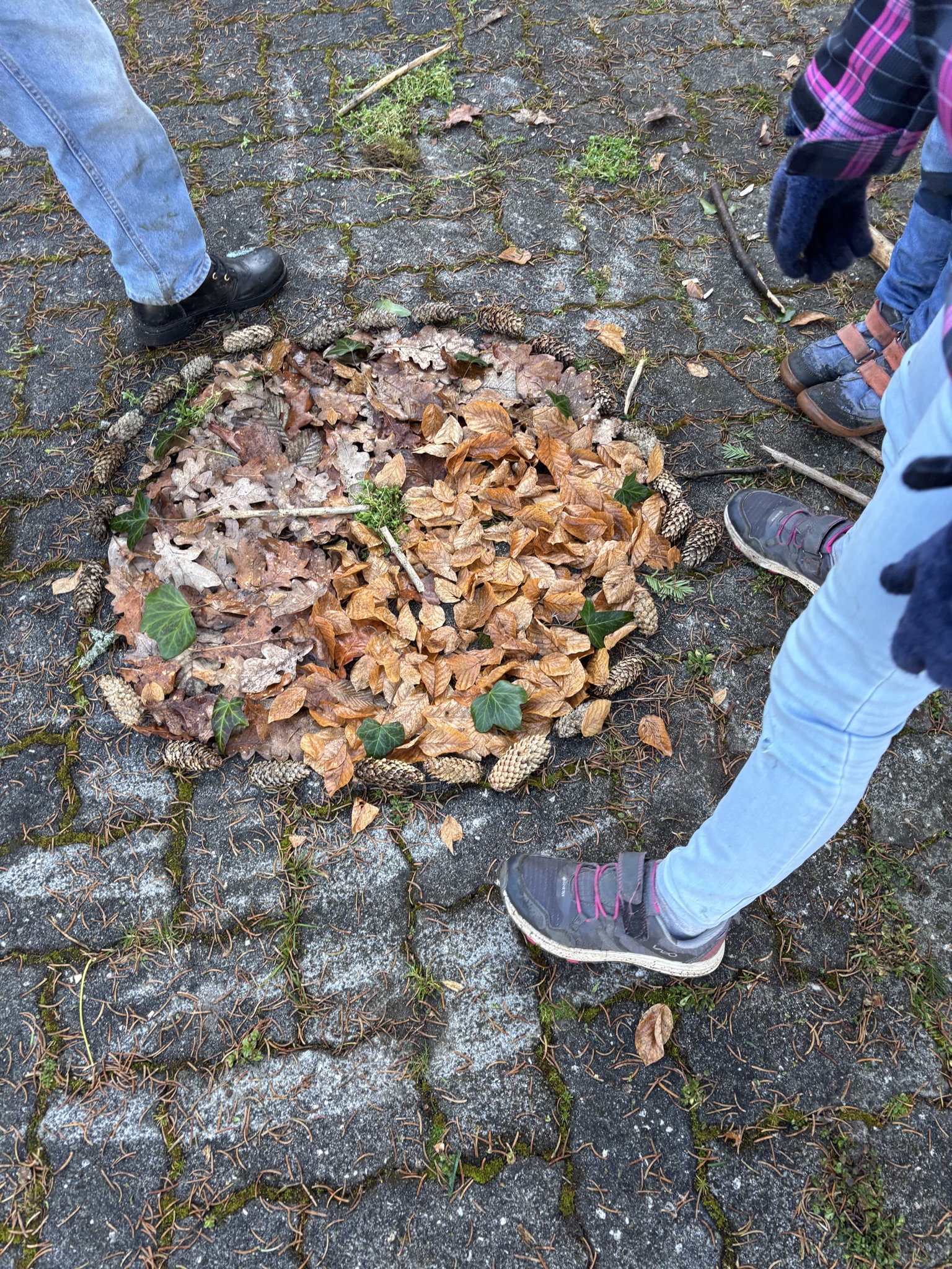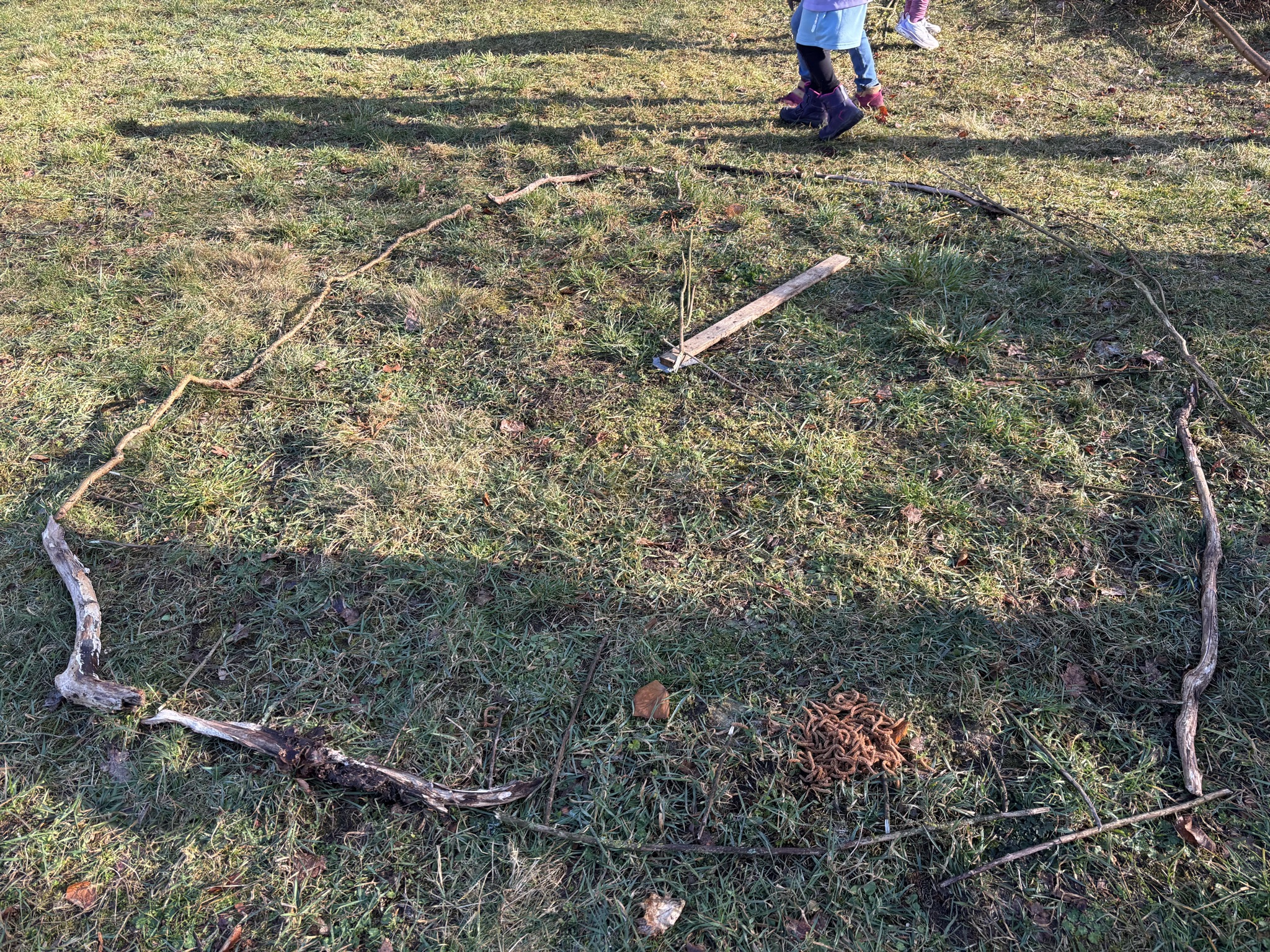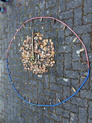 Während des „Neuen Lernens“ draußen auf der Pfarrwiese, entstanden Uhren mit verschiedenen Materialien.