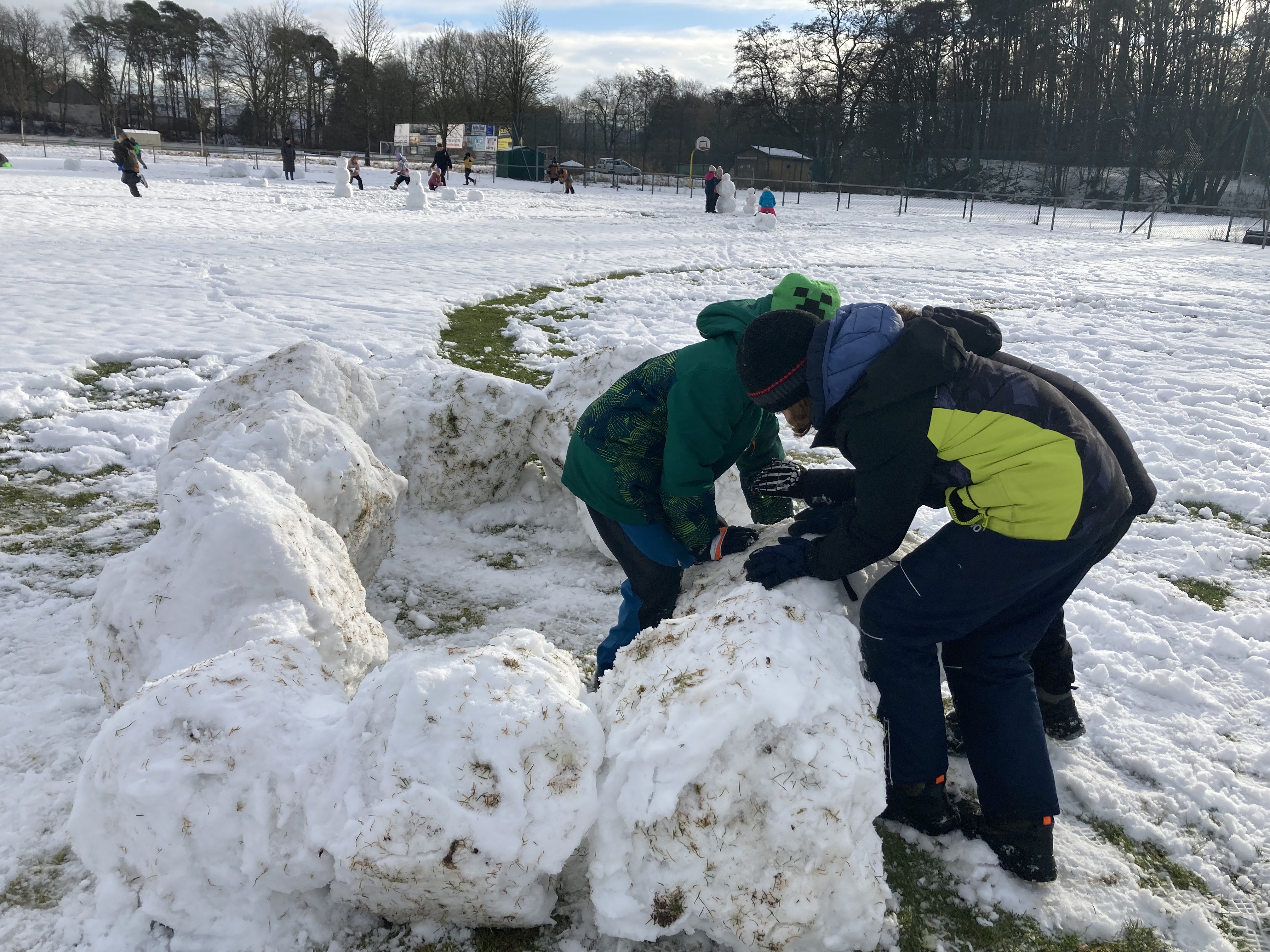 den Sportunterricht nach draußen verlegt und das herrliche Winterwetter genossen. Wunderschöne Schneemänner und riesige Mauern wurden gebaut, Schneebälle über Zäune und in den Kanal geworfen und auf Pfützen geschlittert.